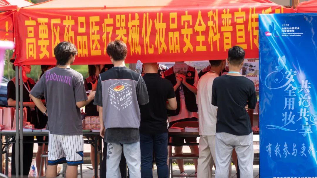 肇庆市市场监督管理局副局长谢慈贤、肇庆市市场监督管理局化妆品监管科科长岑昶宁、肇庆市药品检验所所长谢伟、肇庆市皮肤病医院副主任医师刘珍华、高要区市场监督管理局党组成员阮伟炜出席和参加活动。活动包括知识讲座、现场义诊、答题与体验等内容。