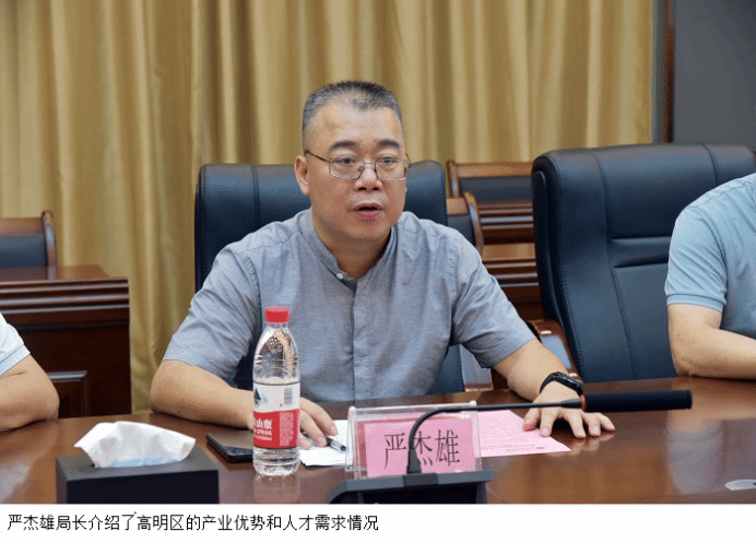 严杰雄局长介绍了高明区的产业特色和人才需求情况,他指出,高明区制造业发达,对工科人才特别是现代高新技术制造业专业人才需求量大,beat365官方网站在这方面人才培养优势明显,他希望与学校就人才培养、招聘等方面开展深度合作,聚集双方优势,吸引更多毕业生到高明区实习、就业。