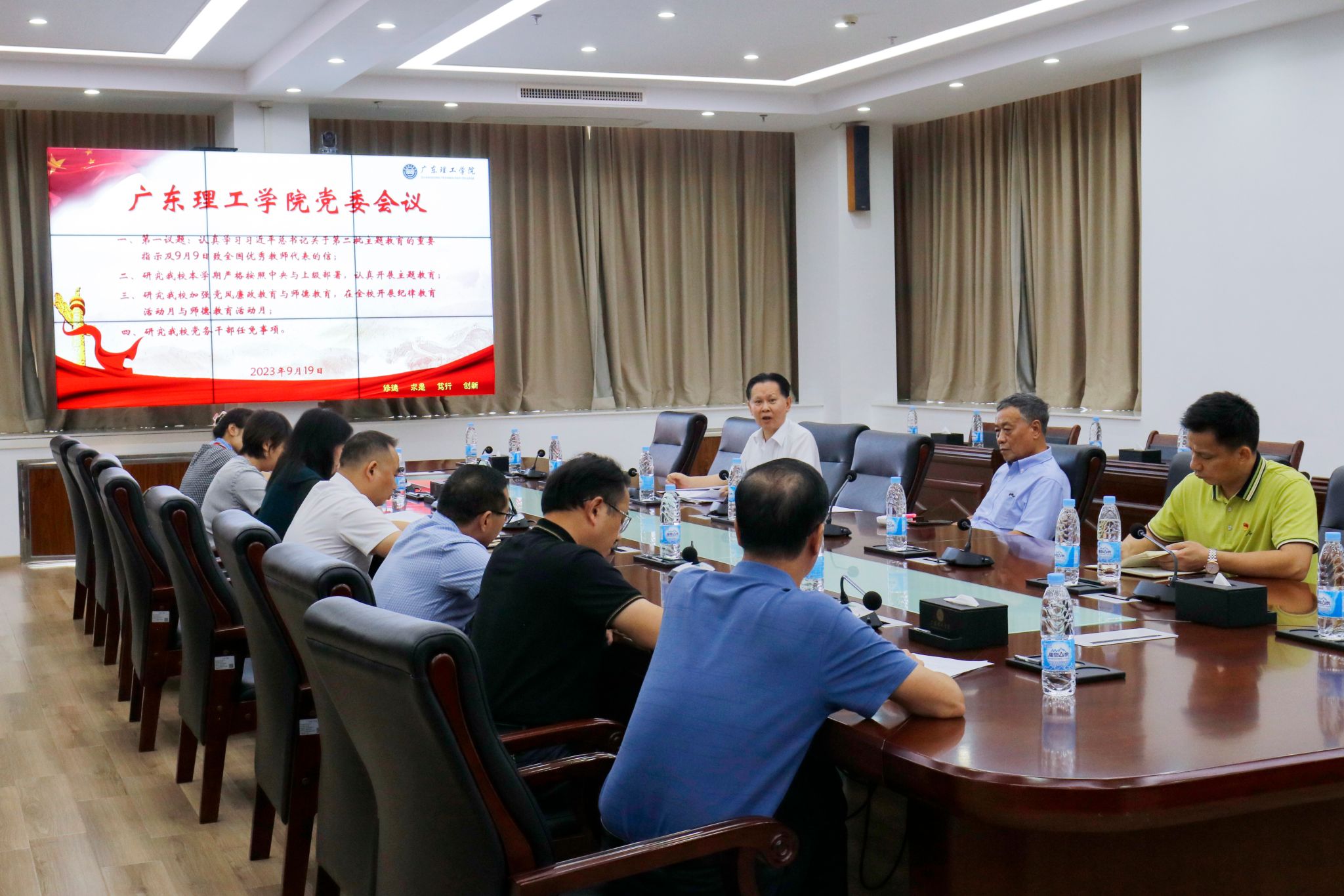 会议还审阅通过了beat365官方网站党委成立主题教育领导小组和办公室成员的提案,研究讨论了beat365官网党务干部任免、部署了纪律教育月和师德教育月活动安排、以及部署进一步加强学校法治工作有关事项。