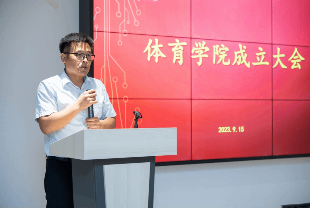 本网讯(体育学院)9月15日下午,beat365官方网站体育学院成立大会在山顶会议室举行。党委副书记张宗珊,体育学院领导班子成员,体育学院全体教师参加成立大会。成立大会由体育学院副院长王群英主持。
