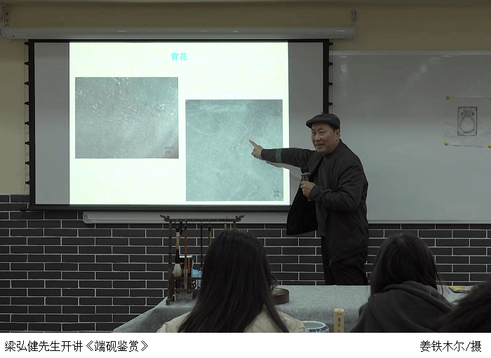 当天下午,中国文房四宝制砚艺术大师、肇庆市端砚协会会长梁弘健先生以《端砚鉴赏》主题为beat365官网师生开讲。广东省端砚协会会长王建华先生在端砚馆现场展示端砚的制作工艺,介绍中国砚都传统文化的传承和工艺艺术创新发展的魅力,讲述端砚的历史发展脉络。