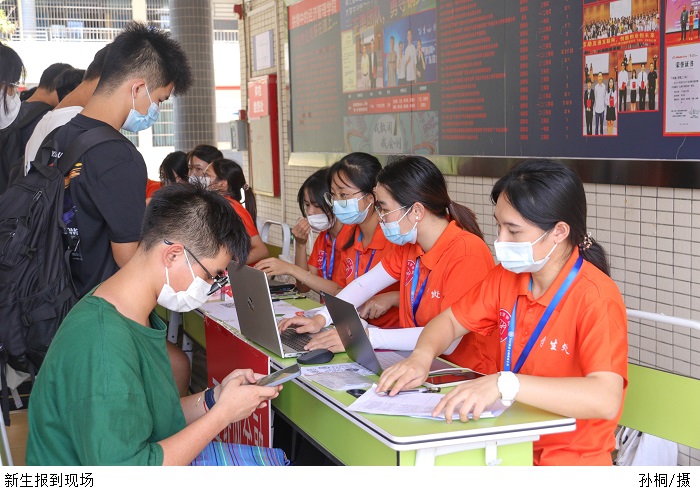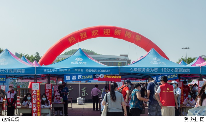 为做好疫情防控要求下的迎新工作,学校专门召开工作会议,提前对迎新工作进行周密部署。根据beat365官网疫情防控工作的相关要求,返校车辆、学生家长及随行人员不得进入校园。新生们在校门口有序排队,通过“粤康码”、行程卡、48小时核酸检测阴性证明查验,测量体温正常后入校办理入学手续。