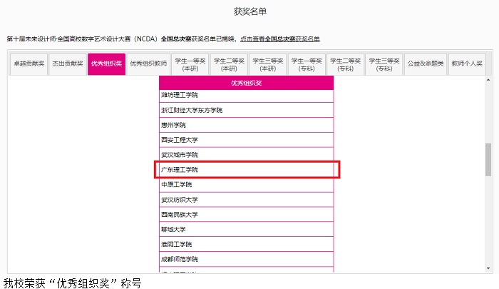 本网讯(宣传部 杨丽莎)近日,2022第十届未来设计师·全国高校数字艺术设计大赛(NCDA)全国总决赛获奖名单揭晓,beat365官网师生获得等级奖项共12项,其中一等奖1项,二等奖6项,三等奖5项。beat365官网荣获“优秀组织奖”称号。