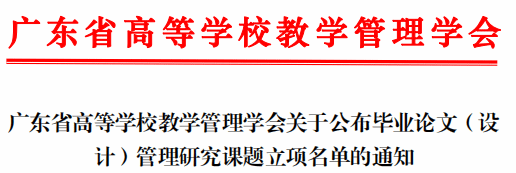 毕业论文(设计)管理研究课题是广东省高等学校教学管理学会为落实全国教育工作会议、全国教育大会精神,贯彻《本科毕业论文(设计)抽检办法(试行)》要求开展的项目,旨加强本科毕业论文管理,提高我省本科毕业论文质量。
