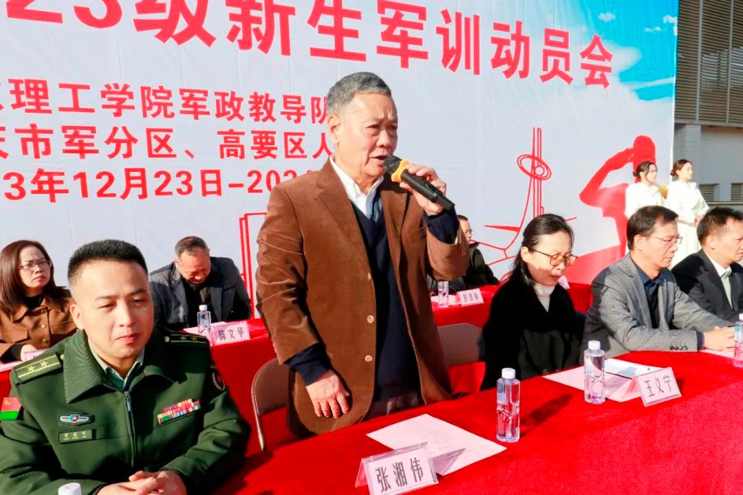 张东生、王义宁在会上代表学校向承担此次军训任务的全体教官致以崇高的敬意和衷心的感谢。他们对2023级新生作出三点要求,一是要端正态度,统一认识,振奋精神;二是要服从命令,严格要求,团结协作;三是要全力投入,顽强拼搏,收获成功。希望各二级学院、各单位精心组织,周密安排,密切配合,严格管理,细心服务。希望军训教官坚持标准,严格要求,扎实施训,确保高质量完成军训任务。最后他们勉励新生能在此次军训中努力成长,收获人生中一份宝贵的经历。
