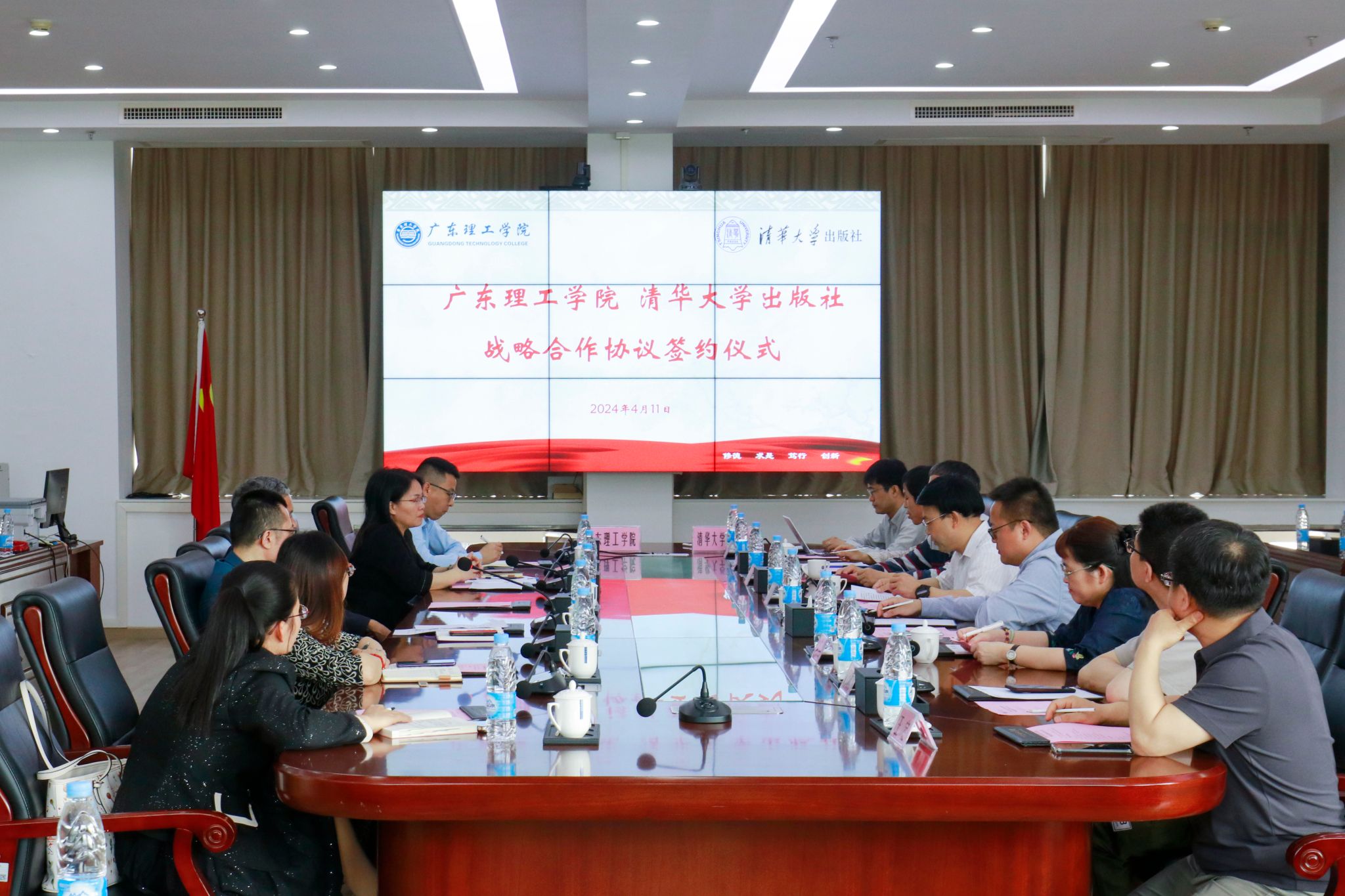 本网讯(宣传部)4月11日,beat365官网与清华大学出版社教材建设战略合作签约仪式在综合楼12楼会议室举行。校长张湘伟与清华大学出版社社长邱显清分别作为双方代表签署协议。此次战略合作协议的签署,既是两所单位间的一次深度融合,也是教育界与出版界携手并进、共创美好未来的新起点。