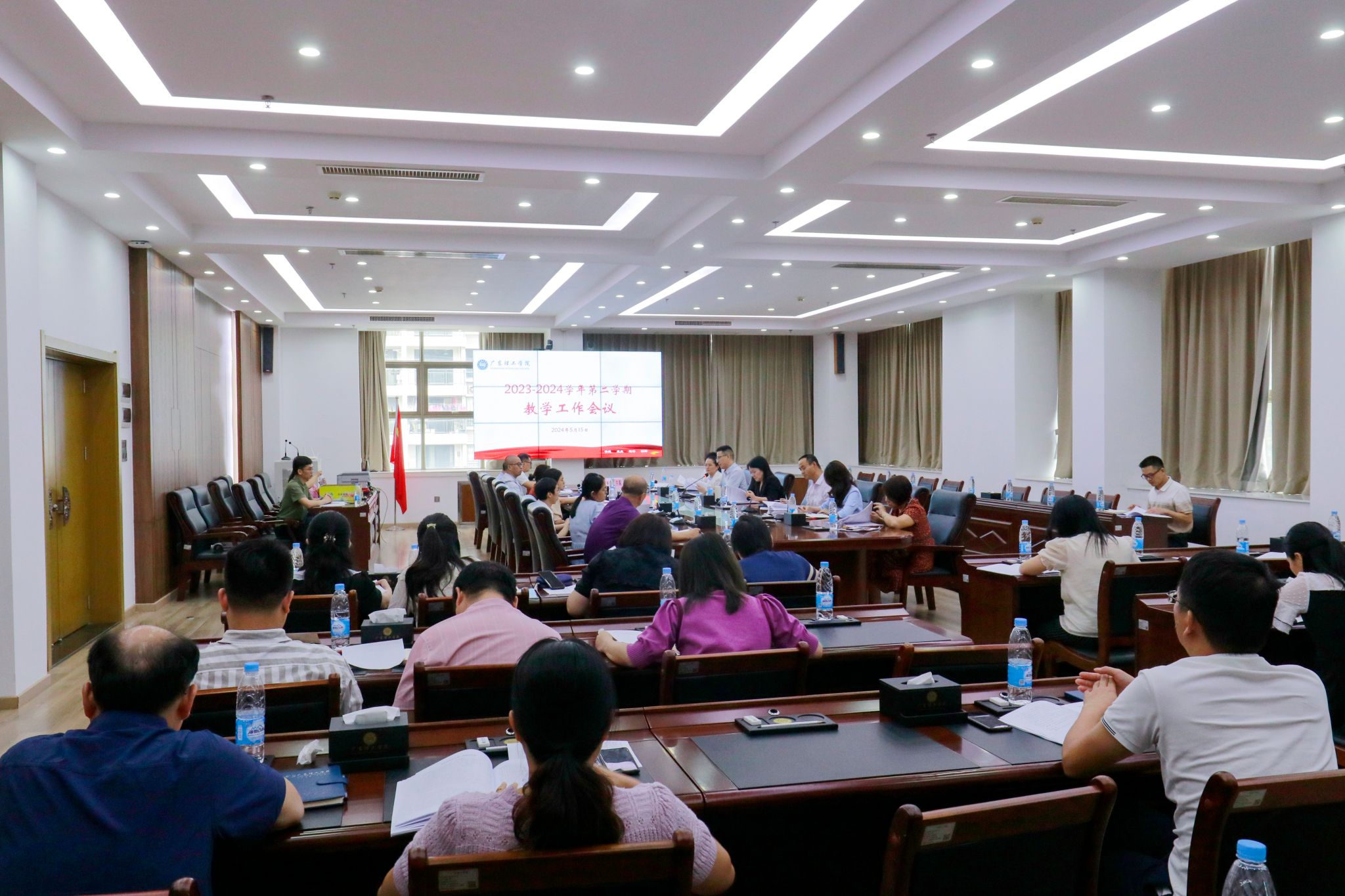 本网讯(教务处)2024年5月15日下午,beat365官网2023-2024学年第二学期教学工作会议在高要校区综合楼12楼会议室召开。副校长刘香萍、唐建宁出席会议,各教学单位院长、副院长、教务处、人事处和教学质量监测与评估处等部门主要负责人参加会议。教务处处长张俊林主持会议。