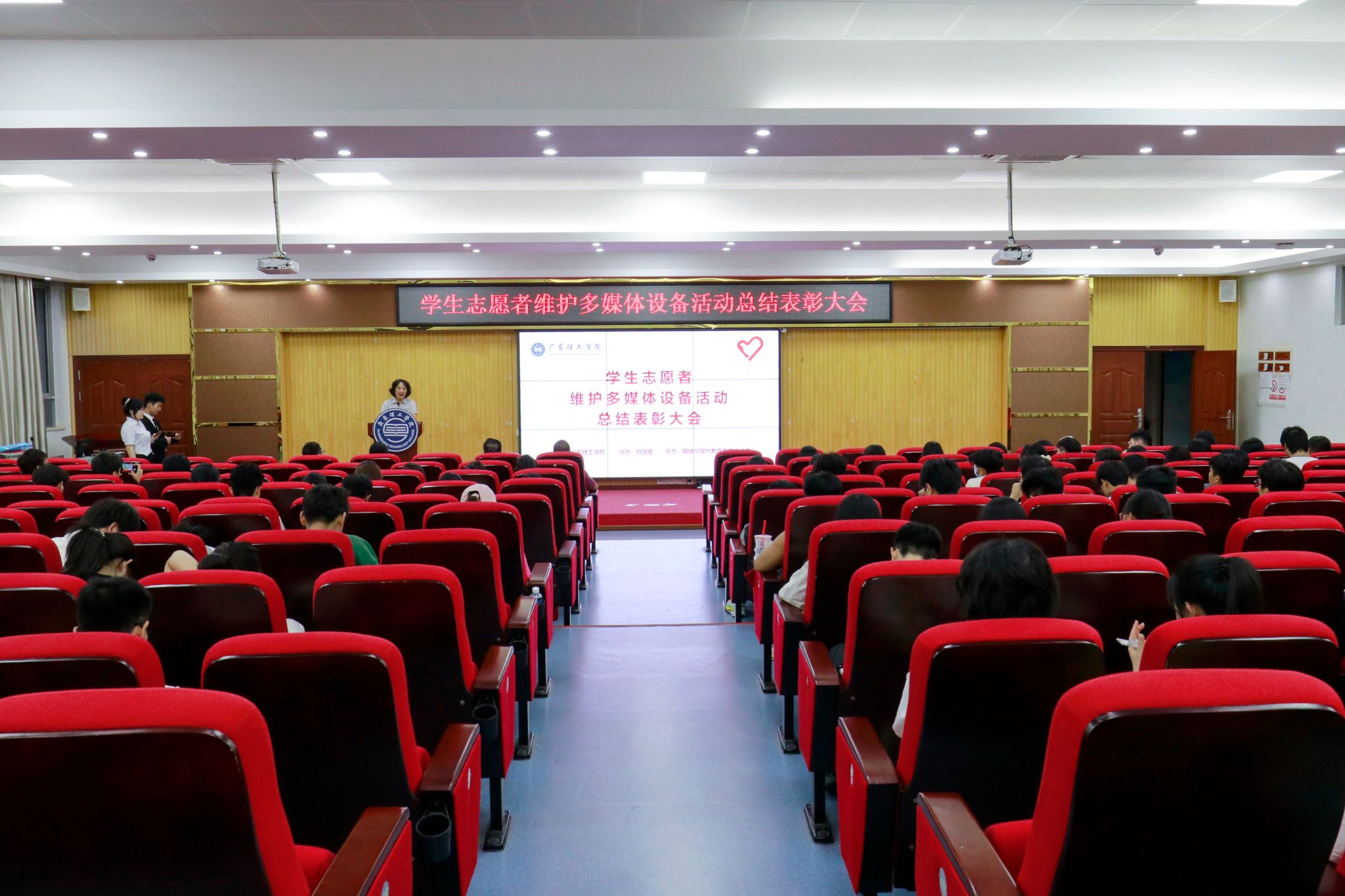 赖汶熙作为优秀志愿者代表上台发言,她表示从中意识到多媒体设备维护和管理的重要性,未来也将继续发扬志愿者精神,为维护学校的多媒体设备贡献自己的力量。