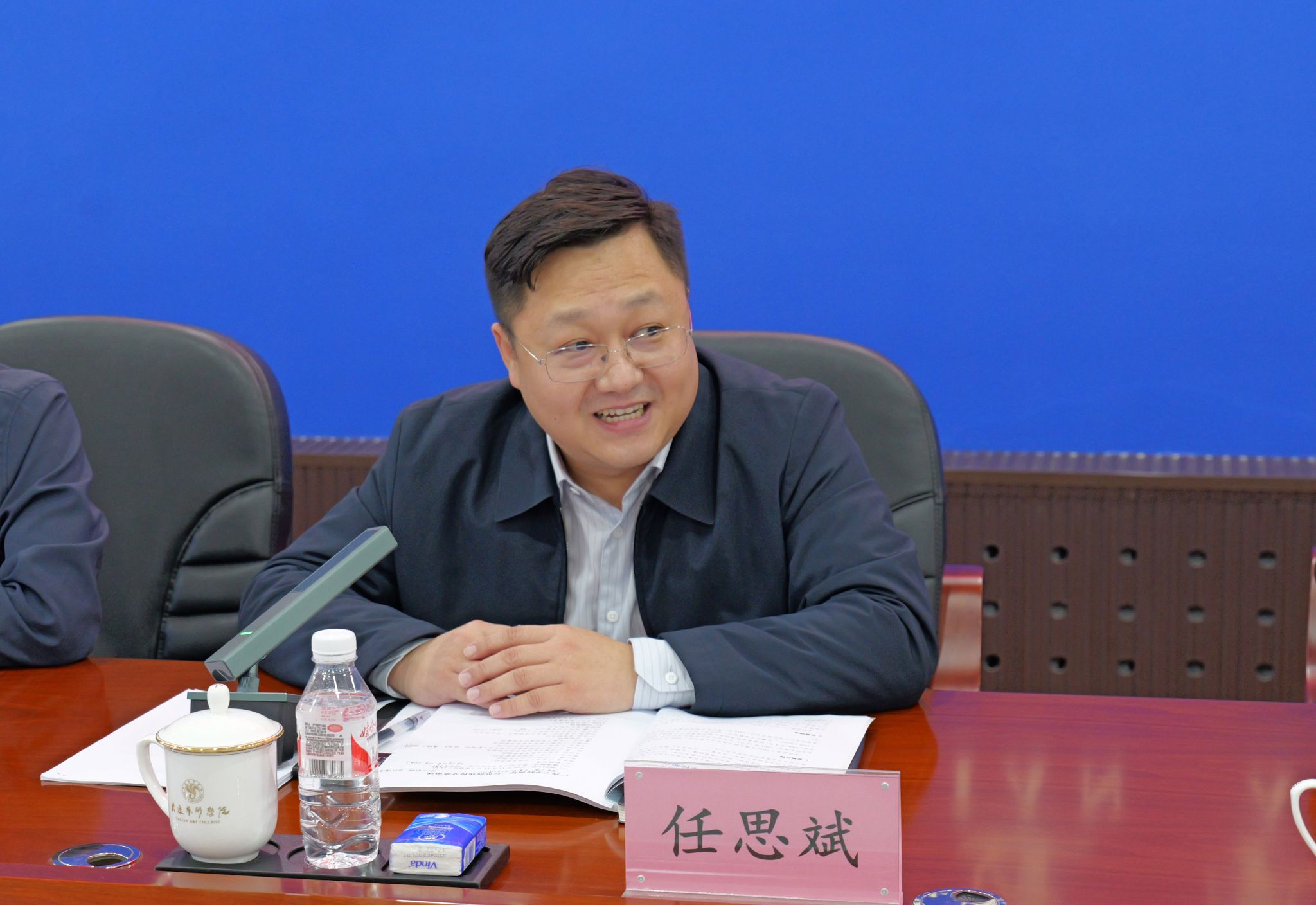 大连艺术学院党委副书记任思斌、纪委书记田苗苗及党委宣传部网络中心、党校办公室、党政办公室、学生处等有关部门负责人热情接待并与beat365官网调研组一行进行了深入座谈。