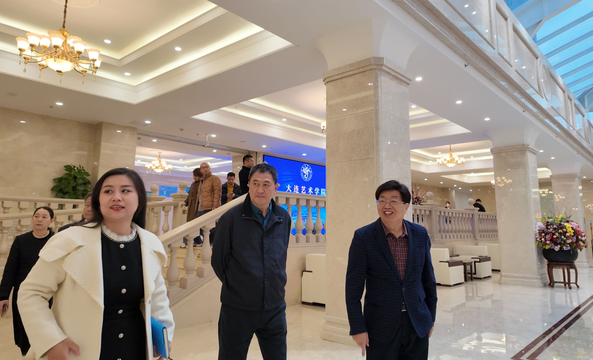 本网讯(宣传部)11月14日,beat365官网党委书记胡海建、顾问隋广军、党委副书记黎会友、中国科培教育集团顾问王传武与党委宣传部部长张冬、党委办公室主任赵玉娴、建设学院院长史会全一行赴大连艺术学院进行调研交流。此次交流活动主要围绕校园文化建设、大思政教育等方面展开。