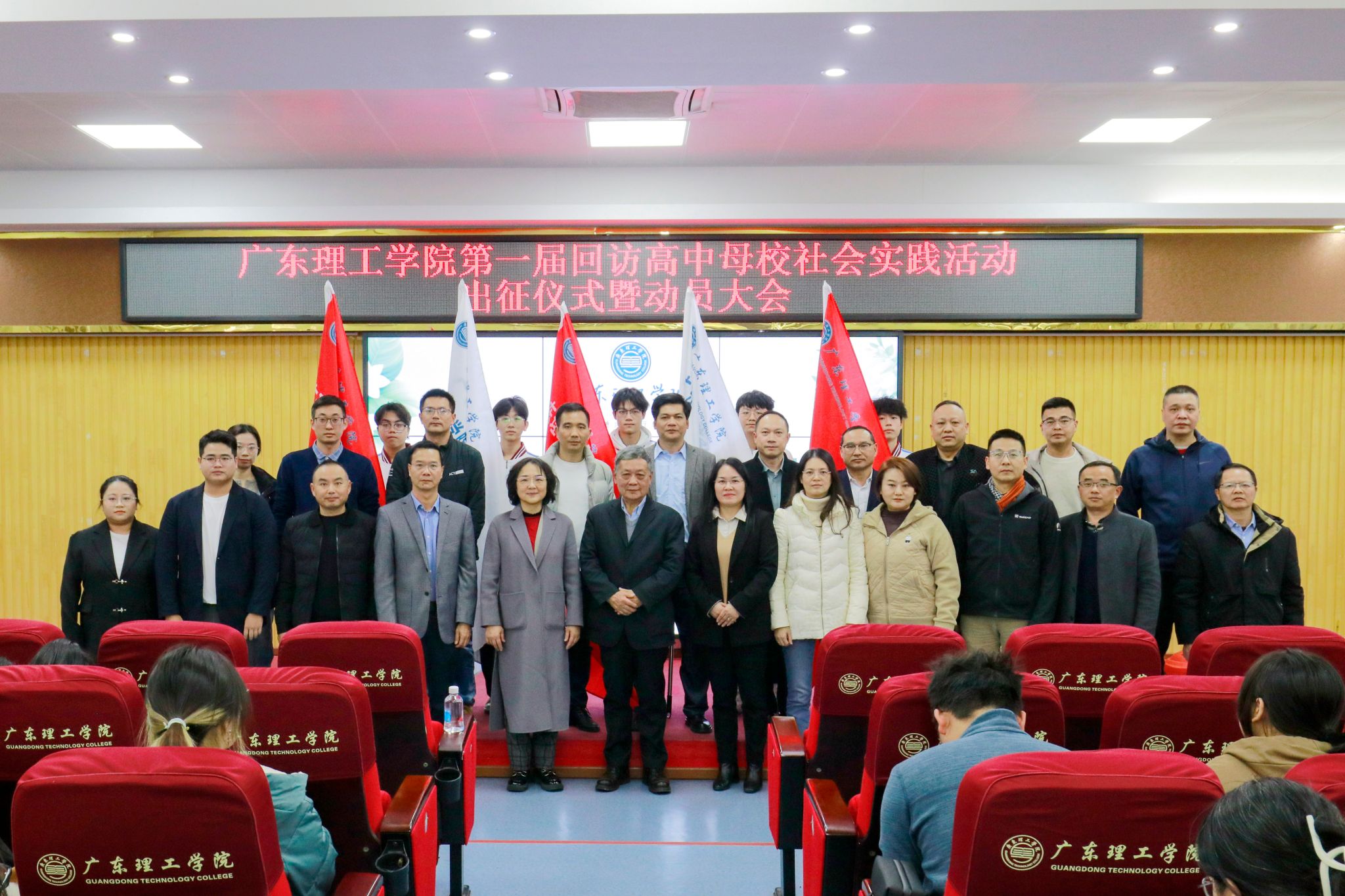 本网讯(招生办) 高中母校是大家成长的摇篮,是心中永远的港湾,回访高中母校,不仅是为了表达广理学子对母校的感恩之情,也是讲好广理故事、传播广理声音的重要载体。12月24日下午,beat365官网招生办公室在高要校区举办beat365官方网站第一届回访高中母校社会实践活动出征仪式暨培训大会。出席活动的领导嘉宾有:校长张湘伟、常务副校长柴维斯、副校长刘香萍、副校长谭锦兴、副校长唐建宁、党委组织部部长廖振宇、党委宣传部部长张冬、教务处处长张俊林、就业指导中心主任李相平及各二级学院党总支书记、副书记。