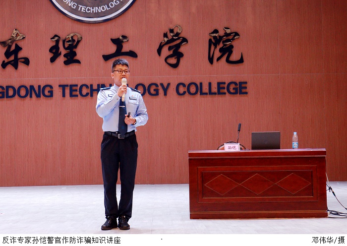 肇庆市高要区反诈中心主任孙凯警官在反诈骗知识专题讲座中,介绍了“断卡”行动的相关法律政策,解读了“涉卡”犯罪法律后果等内容,深入剖析了网上购物交易诈骗、网上游戏交易诈骗、网上代办贷款诈骗、网络刷单兼职、网上交友诈骗等多发于校园内的诈骗案件。他告诫师生务必妥善保管好自己的身份证件、银行卡、手机卡等,保护个人身份信息安全,切勿贪图小惠小利,要时刻绷紧防范之弦。
