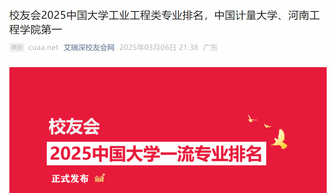 本网讯(经济管理学院 魏嫚)2025年3月,全国第三方大学评价机构艾瑞深校友会网(Cuaa.net)公布最新校友会2025中国大学一流专业排名,专业排名评价指标由学科水平、培养质量、师资水平、专业水平和专业影响等5大指标构成,标准化工程专业排名(应用型)中, beat365官方网站获评2025中国三星级应用型专业(3★),晋升中国区域一流应用型专业行列,荣登冠军,这是自2024年以来第2次荣登校友会专业排名榜首。
