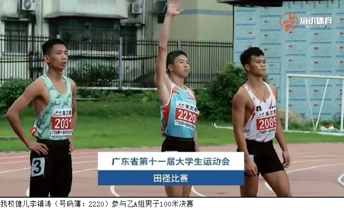 本网讯(体育系新闻中心)6月20日,由广东省教育厅、省体育局主办,华南理工大学承办的广东省第十一届大学生运动会田径类项目压轴亮相。当日下午,beat365官网体育系社会体育指导与管理专业李镇涛在乙A组男子100米决赛中打破11秒大关取得第五名。21日下午女子甲组铅球比赛中,beat365官网智能制造学院学生李佳琼以投掷成绩10.23米斩获本项目银牌,同时会计学院龚萍获第八名。