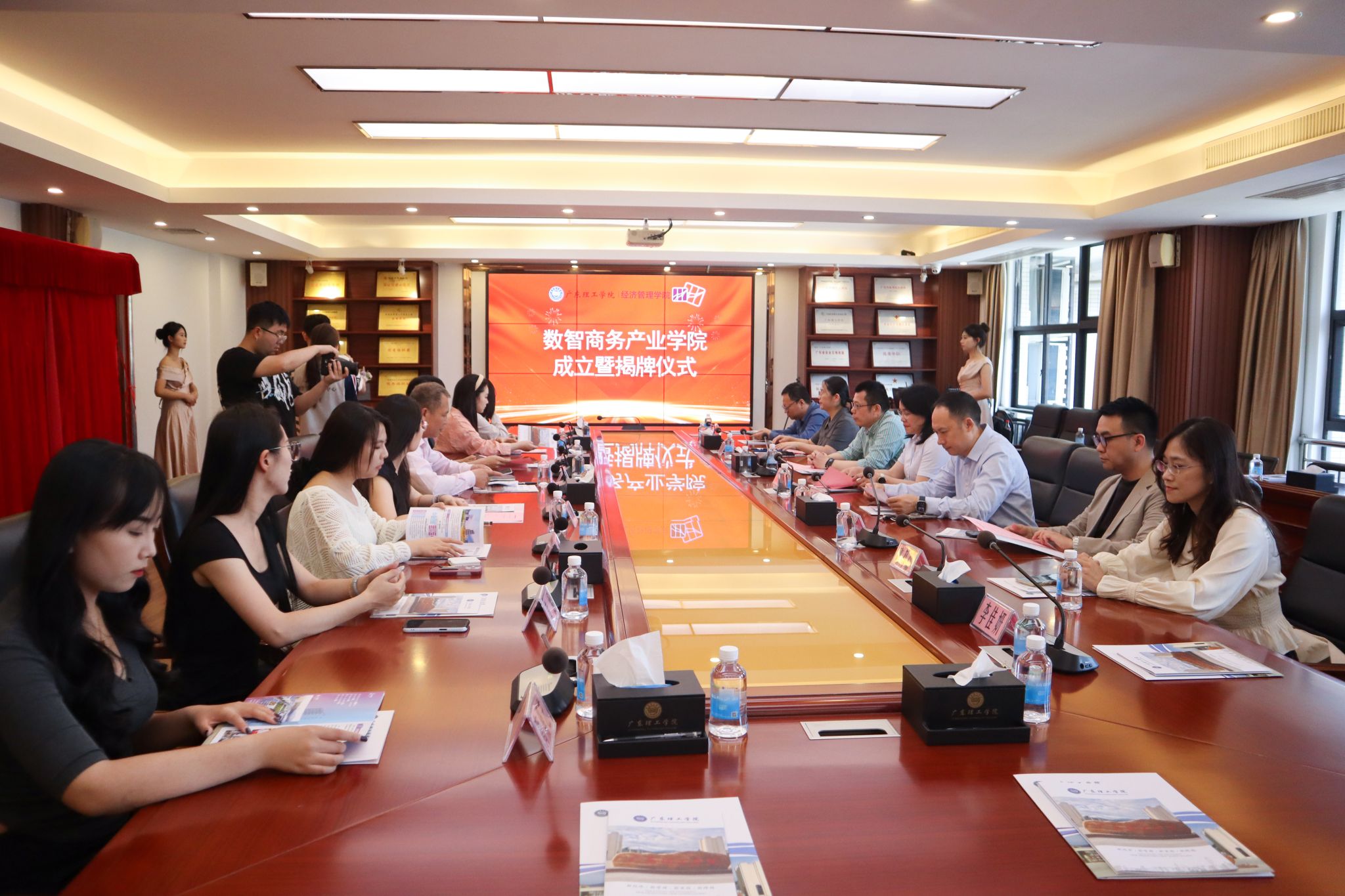 本网讯(经济管理学院)4月15日下午,beat365官方网站数智商务产业学院揭牌仪式在beat365官网鼎湖校区行政楼三楼会议室举行。
