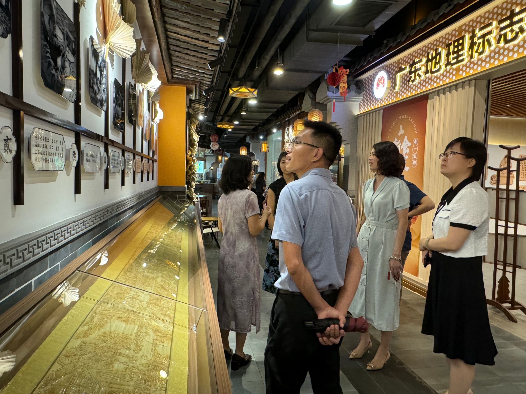 座谈结束后,唐建宁副校长一行在新会区人社局副局长何赟的陪同下参观了丽宫陈皮博物馆,深入了解新会陈皮工艺的悠久历史、独特文化以及产业发展现状,感受新会作为“陈皮之乡”的深厚底蕴。随后,双方又前往非遗传承项目“葵艺”的展示地,在“葵艺”非遗传承人余惠云老师的介绍下,观赏了葵艺制作的精湛技艺,领略了新会丰厚的非物质文化遗产魅力。