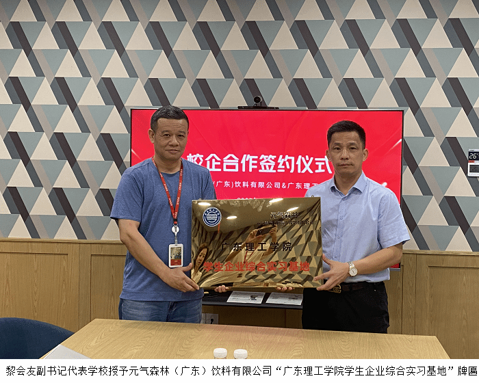 随后,黎会友一行赴元气森林(广东)饮料有限公司走访,参观了企业的生产车间、研发中心等区域,了解企业发展规划与人才需求。双方围绕产学研合作、人才培养模式创新、实习生顶岗实习等方面进行了深入探讨。企业负责人杨明表达了吸纳学校优秀实习生的意愿,期待双方能建立长期稳定的合作关系。随后双方正式签订了校外实践教学基地协议,黎会友代表学校授予元气森林(广东)饮料有限公司“beat365官方网站学生企业综合实习基地”牌匾。