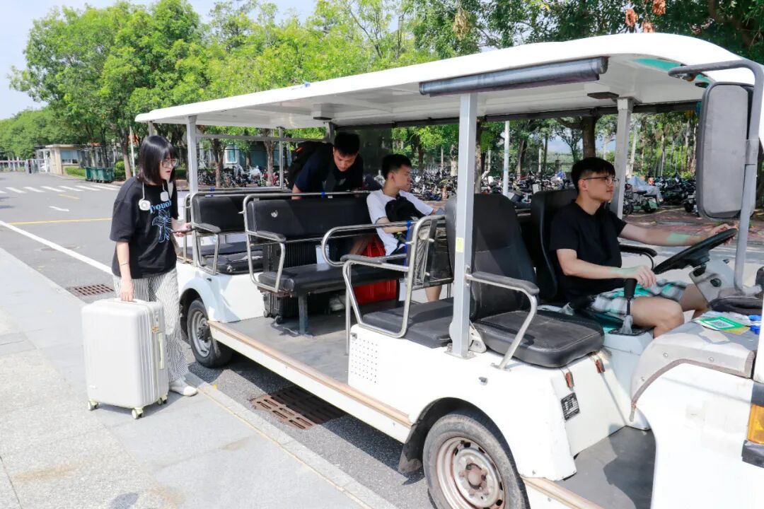 “你好,同学,需要帮忙吗?”迎新工作人员及志愿者们早早值守在校内各接待点,为新生提供报到指引、物资领取、行李搬运等热情帮助。今年,学校在主要站点安排接驳车,部分志愿者早早抵达汽车站、火车站及高铁站开展接站服务,为新生提供乘车、出站指引。