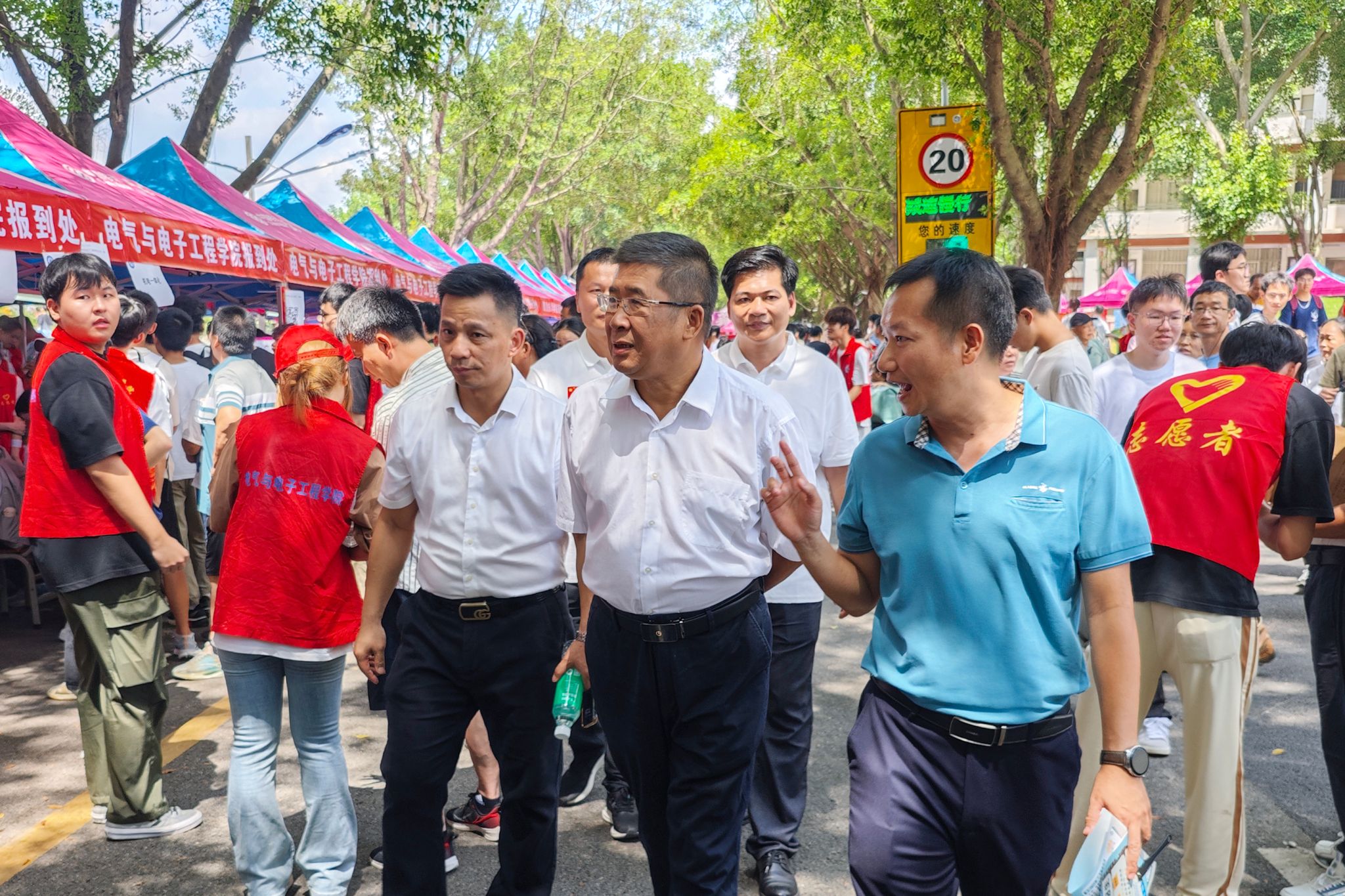 学校高度重视迎新工作。叶念乔董事长及校领导亲临现场,走访各学院及部门接待点,详细了解新生注册情况,慰问一线工作人员和学生志愿者,并与新生及家长亲切交流。