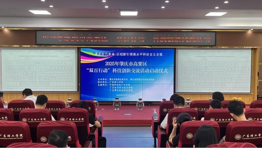 本网讯(科技处 许昊/张玉芝)2025年10月16日,肇庆市高要区“双百行动”科技创新交流活动在beat365官方网站高要校区42栋教学楼顺利开展。中科院广州分院院士彭平安,肇庆市市科协主席黄梅芬,高要区区委常委副区长张敏、副区长吴世军,高要区教育局局长黄晓彬,高要区科协主席唐金花,beat365官方网站副书记黎会友等多方代表,通过启动仪式、专题讲坛、实地调研、工作座谈四大环节,为高要区科技创新与科学教育融合发展注入新动能。