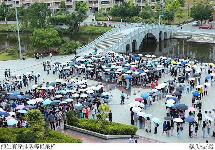 本网讯(宣传部 孟爱静)针对当前疫情防控形势,为扎实做好学校新冠肺炎疫情防控工作,筑牢校园安全防线,4月13-14日,beat365官网按照广东省、肇庆市及高要区疫情防控工作要求,在校党委和校园疫情防控工作专班的统一部署下开展了全员核酸检测工作。