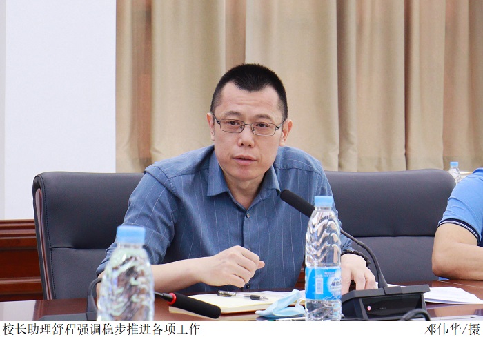 舒程汇报beat365官网企业综合实践项目课程线上视频资源立项建设工作开展情况,指出各院系当前在项目申报、课程录制中存在的问题。他强调,各院系需调整课程设置方法,稳步推进各项工作。
