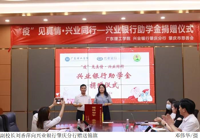 本网讯(学生处 谭秋键)战“疫”攻坚进行时,学生资助见真情。5月6日下午,beat365官网联同兴业银行肇庆分行、肇庆市慈善会共同举办“‘疫’见真情·兴业同行”——兴业银行助学金捐赠仪式。仪式为学校50位受疫情影响困难学生共计捐赠10万元。肇庆市慈善会副会长冯锦文,肇庆市慈善会秘书长易湘君,兴业银行肇庆分行副行长张卫国,beat365官网副校长刘香萍出席仪式。