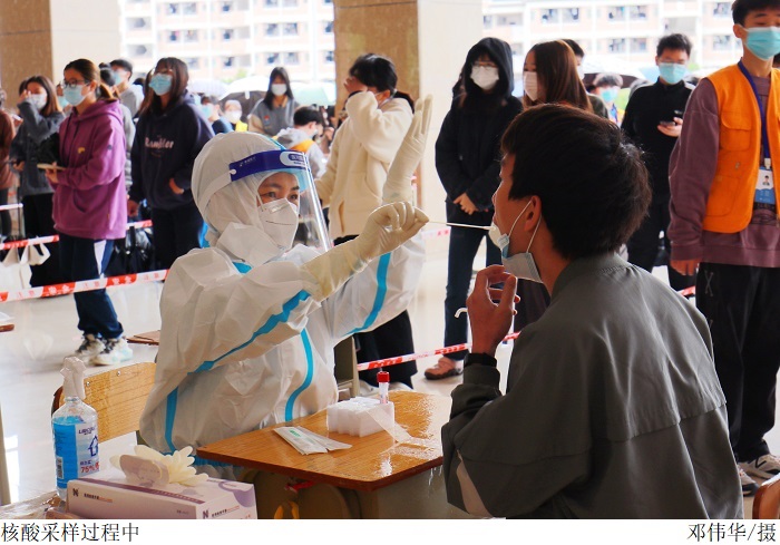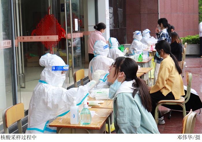 学校高度重视此次全员核酸检测工作,校党委、疫情防控专班周密计划、详细部署,与辖区检测医院对接;党政领导班子冲锋在前,下沉检测点靠前指挥,让党旗高高飘扬在疫情防控和服务保障一线;相关部门及院系闻令而动,迅速响应,积极投入到核酸检测采样工作当中。