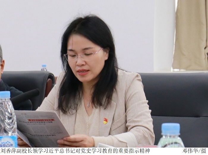 会上,副校长刘香萍领学习近平总书记对党史学习教育的重要指示精神。党委副书记黎会友领学习近平总书记在中央政治局党史学习教育专题民主生活会上的重要讲话精神。
