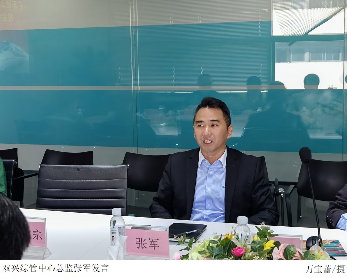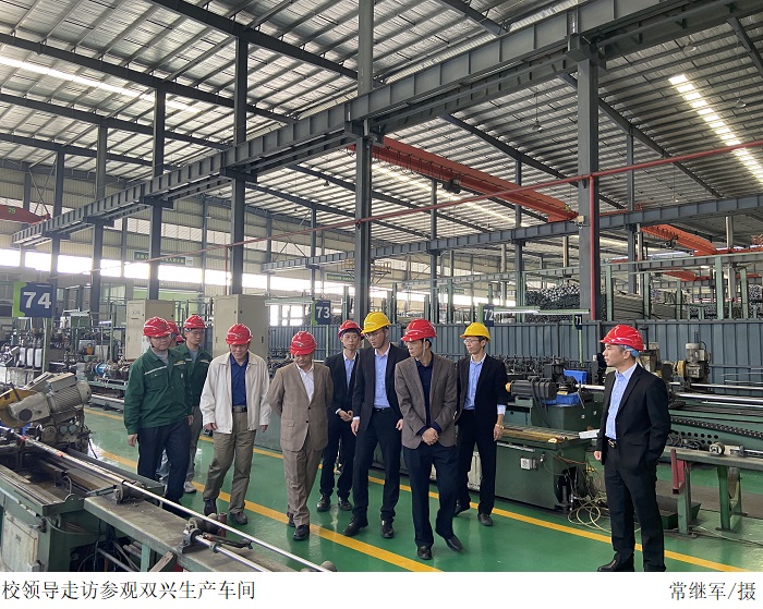 本网讯(学综办 万宝蕾)为创新beat365官网人才培养模式,深度推进产教融合发展,了解学生在企业实习情况,12月8日党委副书记张宗珊、副校长谭锦兴、校长助理于兆勤及学生企业综合实习管理办公室成员一行前往广东双兴新材料集团有限公司走访调研,看望慰问beat365官网实习学生,并与双兴集团综管中心总监张军、管件事业部总监李宪宗、生产中心经理谭宗宁、人事总监徐猛进行交流座谈。