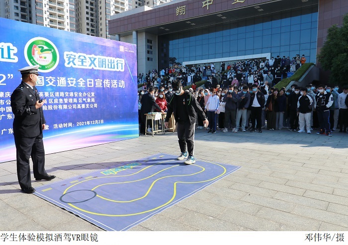 课后,市公安局高要分局交警大队在礼堂外广场通过展示警摩骑行、模拟酒驾VR眼镜体验、赠送安全头盔、面对面讲解交通安全法律法规知识常识等活动开展宣传,使同学们进一步熟悉和掌握相应的交通安全法律常识,提高交通意识。