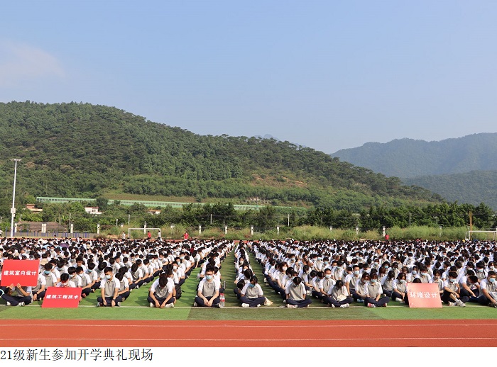 本网讯(校报记者曾剑文)9月13日上午,鼎湖校区2021级新生开学典礼在足球场隆重举行。党委书记张东生出席并作重要讲话。党委副书记黎会友主持大会。副校长刘香萍、校长助理舒程、各院系负责人、新生辅导员及2021级新生参加。