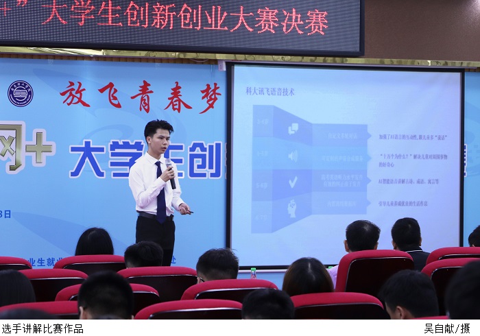 校长助理于兆勤在致辞中向晋级决赛的队伍表示祝贺。他表示,“互联网+”创新创业大赛在国内高校创新创业竞赛中,是覆盖面最广、影响力最大、参赛人数最多的大学生课外科技竞赛活动,是创新创业教育的重要环节。他勉励学生们树立信念、会闯、敢闯,扎根中国大地,在创新创业当中增长智慧才干,在艰苦奋斗中锻炼意志,努力成为建设美好富强国家的奋进者、开拓者、奉献者,用创新创意的主动实践,汇聚起民族复兴的强大力量。