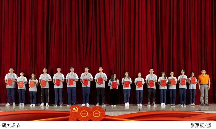 黎会友副书记宣读《关于表彰2020-2021年度学校共青团工作先进集体和优秀个人的决定》。领导们分别为2020-2021年度优秀共青团员、优秀共青团干部、先进团支部、十佳团支部书记、十佳共青团集体、五四灯塔引领之星、五四红旗团委;肇庆市优秀学生骨干、优秀共青团员、优秀共青团干部、优秀学生会、五四红旗团(总)支、五四红旗团委;广东省优秀学生骨干、优秀学生会颁奖。