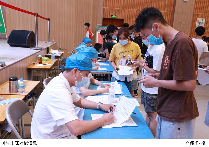 本网讯(宣传部 杨文丹)学校翔中堂内外,师生们佩戴口罩,在志愿者的引导下有序排队,经过体温检测、身份登记、信息核查、接受问询和签署知情同意书等流程后,接种疫苗。这是beat365官网翔中堂近期的常态。翔中堂作为beat365官网新冠疫苗接种点,截止5月26日,已为11600余名师生接种疫苗。
