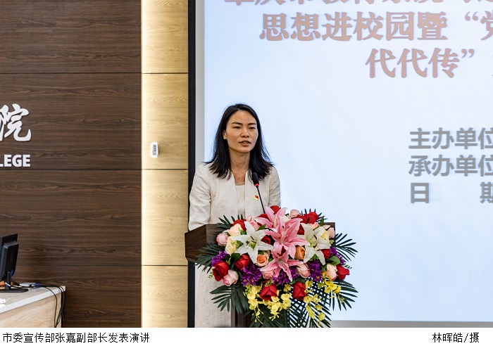 市委宣传部张嘉副部长发表了演讲,她指出,“六进”活动已然成为肇庆市攻坚任务的首位,领导的重视与真抓实干是“六进”活动能够顺利推进的重要原因。并根据“三个化”“三个用”“三个好”对该任务的实施情况作出总结。