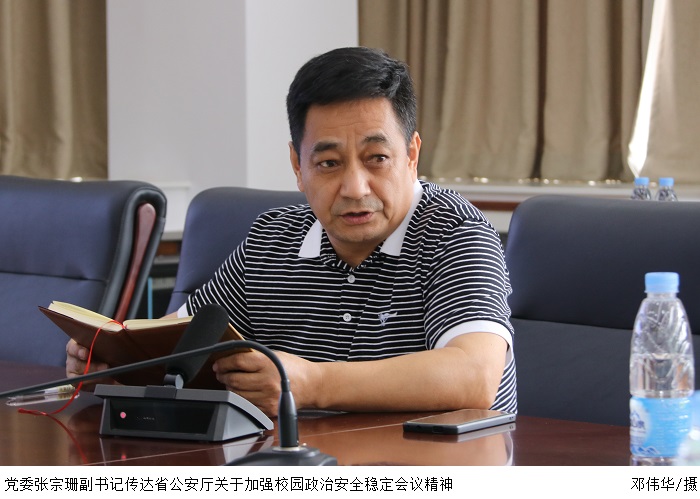 随后,党委张宗珊副书记传达省公安厅关于加强校园政治安全稳定会议精神。张东生书记强调安全无小事,beat365官网应按照省公安厅部署,做好安全保障工作,继续落实法纪、师德师风教育,进一步维护beat365官网的政治安全稳定。