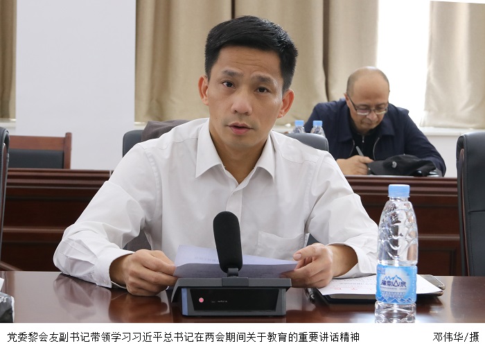 会上,党委黎会友副书记、宣传部彭清林部长还分别带领学习了习近平总书记在两会期间关于教育的重要讲话精神和习近平总书记在全国党史学习教育动员大会上的金句。