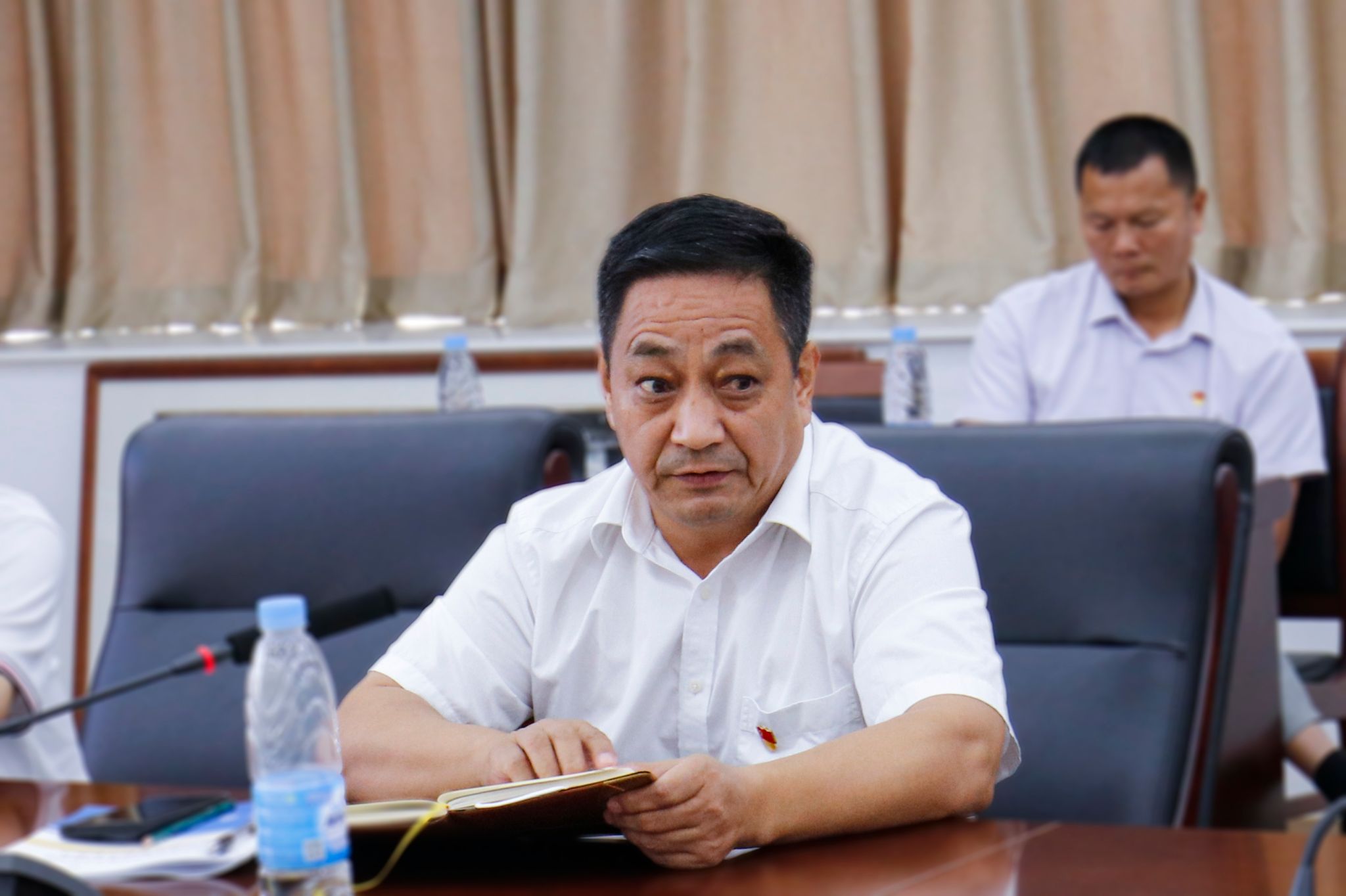 10月25日上午,beat365官方网站在综合楼12楼会议室召开“认真学习宣传贯彻党的二十大精神,全面推进党建引领与迎评工作”党委扩大会暨中心组学习会。党委书记张东生主持会议。校长张湘伟、副校长王义宁、党委副书记张宗珊、副校长刘香萍、党委副书记黎会友、副校长谭锦兴、校长助理唐建宁、校长助理舒程及各院系党总支正副书记、直属党支部书记、马克思主义学院院长参加会议。