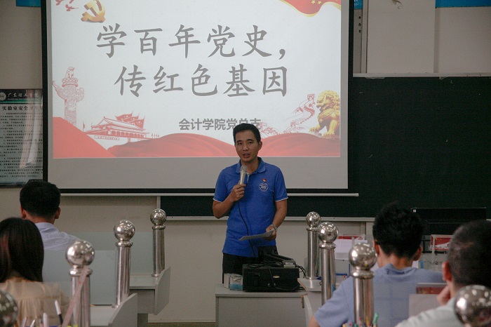 本网讯(会计学院新闻中心)百年征程波澜壮阔,以史为鉴砥砺前行。为进一步深入贯彻落实习近平总书记在党史学习教育动员大会的重要讲话精神,推动教职工党员悟思想、办实事、开新局。4月26日下午,会计学院在7栋201召开教职工党员会议。出席本次会议的有会计学院党总支书记黎伯毅、副书记徐永明、会计学院副院长郑春晓及会计学院全体党员教师。