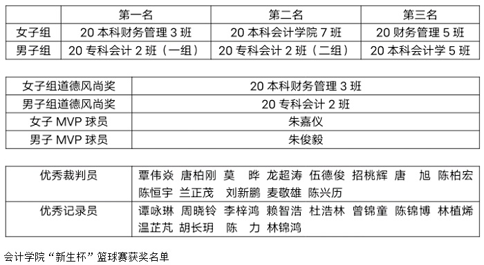 本网讯(会计学院团委学生会)为丰富beat365官网20级新生的校园生活,充分增强和锻炼新生班级的凝聚力和团队合作精神,促进各班级间友谊的发展,为今后的校园活动及赛事打下良好基础。会计学院团委学生会于2020年12月9日-15日在鼎湖校区篮球场举行了2020年会计学院“新生杯”篮球赛。