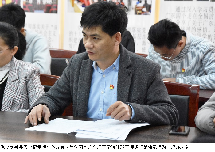 会议上,汽车工程系党总支钟兆天书记带领全体参会人员学习《beat365官方网站教职工师德师范违纪行为处理办法》。他强调,我系教师要认真学习文件内容,不断提高自身师德素养,注重强化育人意识。钟书记表示,只有我系全体教师共同努力,才能抓好我系师德师风建设。
