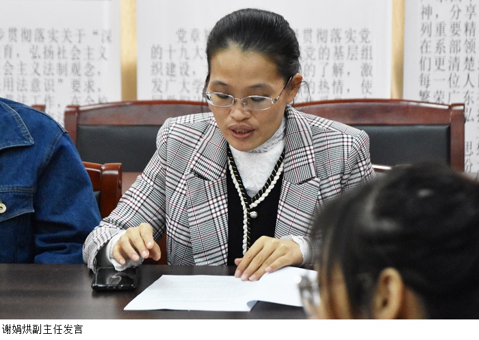 接下来,由汽车工程系谢娟烘副主任发言。谢娟烘副主任强调:我系全体教职工务必严格贯彻落实文件内容。对此,谢主任提出了几点注意事项:在日常课堂教学与网络平台教学的过程中要注意自身的言辞,坚决抵制不良言论;将学生的思想道德教育与教学工作紧密结合,既要严格要求,又要有理有度,积极构建和谐融洽,互尊互爱的师生关系。