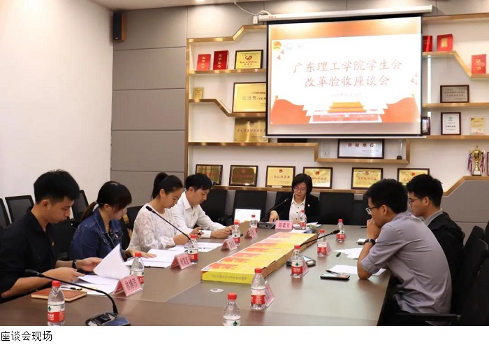 本网讯(校团委)为进一步贯彻落实团中央、教育部、全国学联关于深化学生会组织改革的相关精神,11月26日,团市委陈素芳副书记、伊江林部长到beat365官网进行学生会深化改革验收。beat365官网团委张冬书记、何海辉副书记、经济管理学院党总支吴楚升副书记、电气与电子工程学院团委叶家宜书记,以及学校团干、各级学生会主席团成员、班级学生参加学生会深化改革验收座谈会。