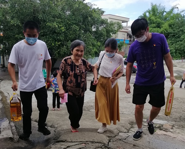 在黎书记的带领下,走访了7家贫困户,在这过程中,会计学院党总支了解了他们的生活情况,认真倾听了他们的需求,并且开展了“精准扶贫”政策宣传,解决了实际困难,积极为群众办实事、办好事,把温暖送到了困难群众的心中,为他们送上了油、米、慰问金等爱心物资。虽然天气酷热,但乡亲们脸上始终洋溢着幸福的微笑,他们用淳朴的话语、热情的招呼,表达了他们对我们深深的感谢和对美好生活的向往。