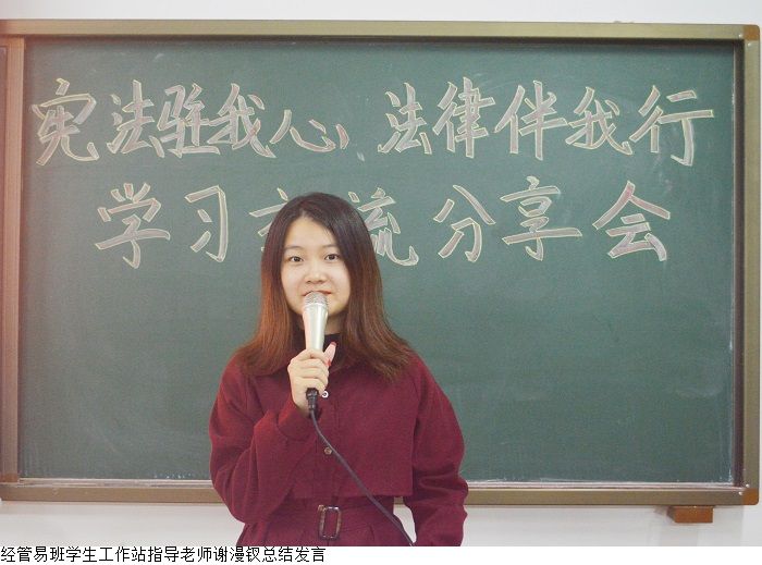 开展宪法学习交流分享会。12月1日,经济管理学院易班学生工作站在7栋305教室举办宪法学习交流分享会。会议期间,各优秀学生代表结合宪法条例以及身边的时事向在座的各位普法、讲法,带领同学们学法、用法,进一步在校园内学习宣传党的二十大精神和宪法知识,促进学生树立忠于宪法、遵守宪法、维护宪法的意识。