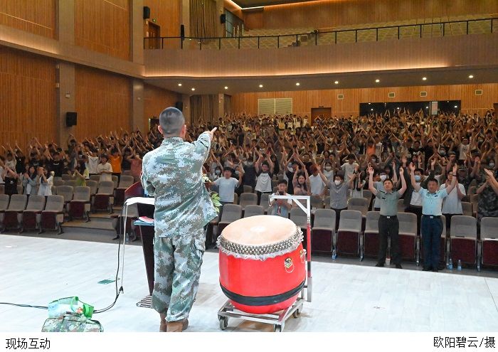 此次征兵政策宣讲会现场“兵”味十足,场下观众热情高涨、掌声不断,线上直播观看人数更高达4000余人。全校师生的热烈反响更彰显出吾辈青年与祖国同呼吸共命运的高度使命感。