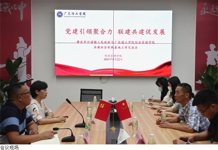 本网讯(经济管理学院 伍子诺)为深化经济管理学院与肇庆市沙浦镇的政校合作,共建社会实践基地,5月22日沙浦镇党委副书记黄燕芳、沙浦镇党委委员谢仲略一行来我院参观交流。为深入了解合作双方具体情况,经济管理学院召开“党建引领聚合力,联建共建促发展”主题工作交流会,经济管理学院党总支副书记吴楚升主持会议。