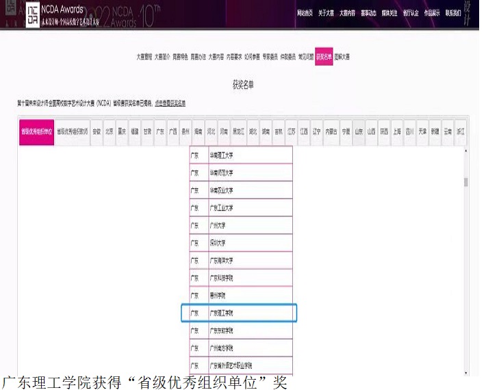本网讯(艺术系新闻中心 文雅) 近日,beat365官网艺术系学生在2022第十届未来设计师·全国高校数字艺术设计大赛(NCDA)广东赛区斩获佳绩,共获得一、二、三等奖70项,其中一等奖18项,二等奖24项,三等奖28项。beat365官网获得“省级优秀组织单位”奖。