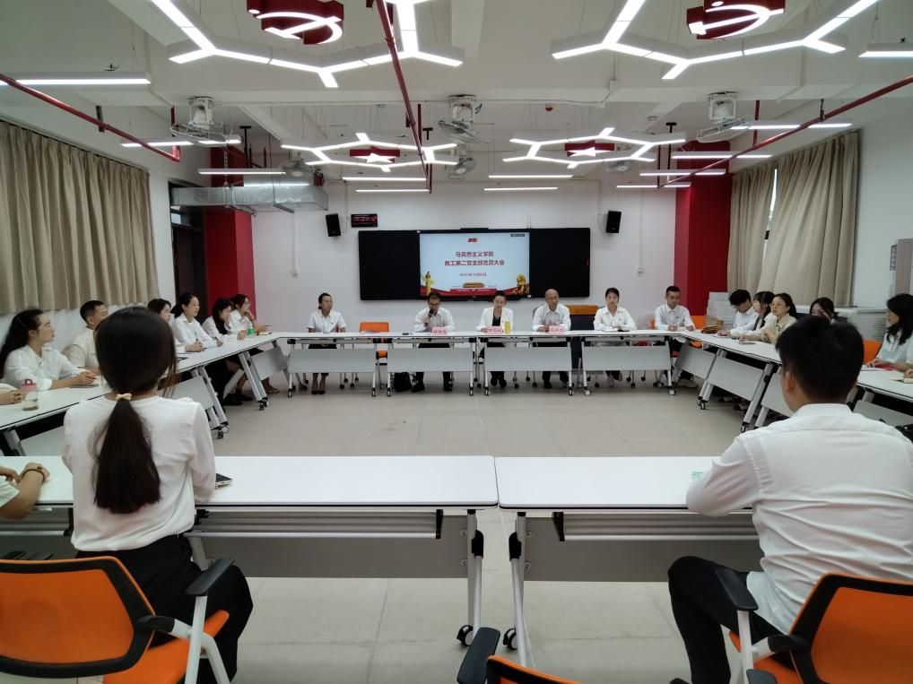 2023年10月8日下午,马克思主义学院教工第二党支部党员大会在鼎湖校区实训楼301VR实验室顺利召开,马克思主义学院院长赵宇宏同志、党总支书记何志红同志、教工第二党支部书记赖金茂同志以及教工第二党支部全体党员共计34人参加了此次会议,会议由教工第二党支部书记赖金茂同志主持。